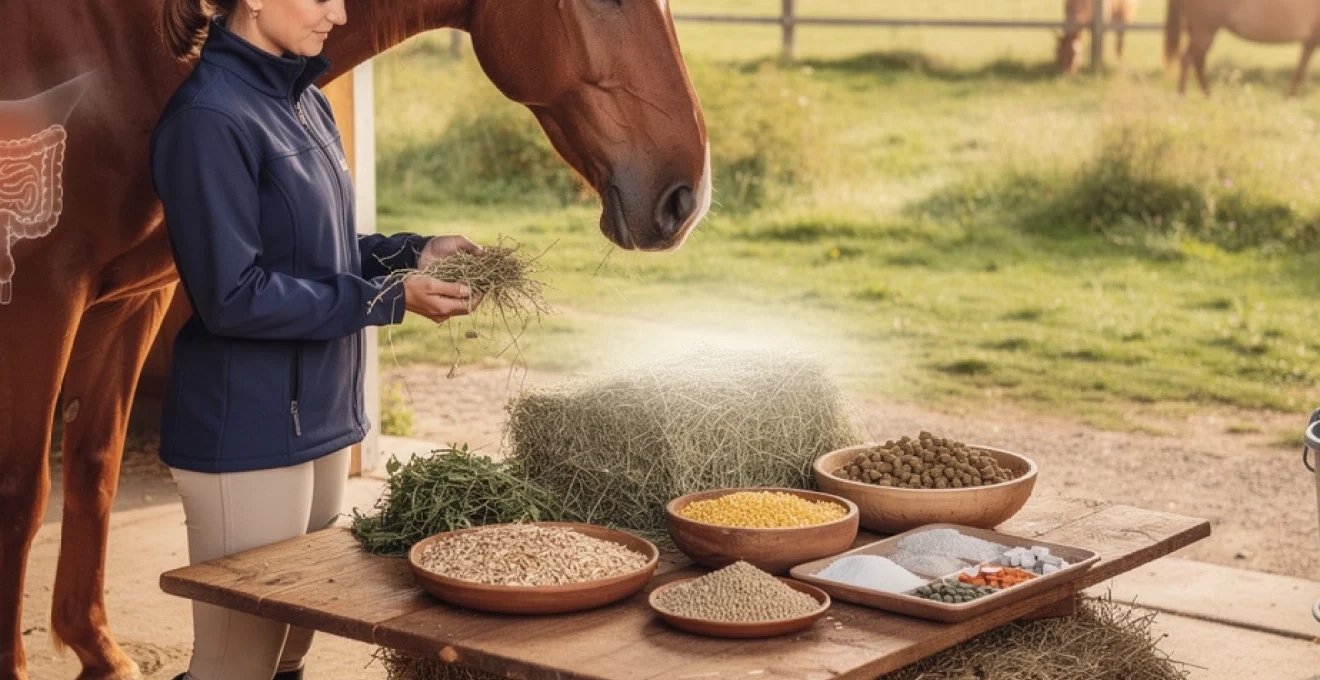 La digestion enzymatique se déroule principalement dans l’intestin grêle, long de 20 à 25 mètres, où les nutriments facilement assimilables comme les protéines, les sucres simples et les lipides sont absorbés. Mais c’est dans le gros intestin, notamment le caecum et le côlon, que réside la véritable spécificité du cheval herbivore. Ces compartiments hébergent une flore microbienne exceptionnellement riche qui permet la fermentation des fibres végétales. Cette architecture digestive explique pourquoi votre cheval ne peut pas vomir, un mécanisme cardiaque au niveau de l’œsophage l’empêchant, rendant ainsi toute erreur alimentaire potentiellement grave.